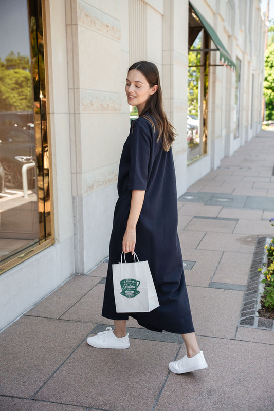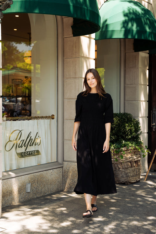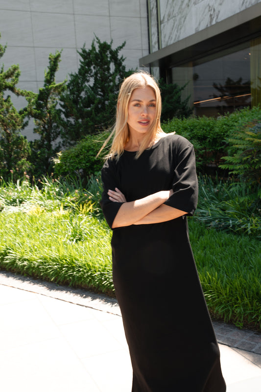 Basic Soft Rib Dolman Maxi Dress in Navy