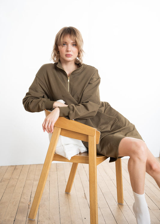 Basic Soft Rib Dolman Maxi Dress in Chocolate